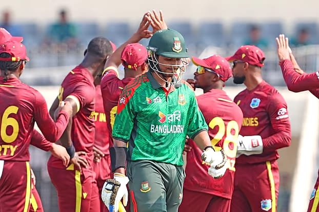 মিরপুরে টস জিতে আগে ব্যাট করতে নেমে ৫০ ওভারে ৭ উইকেট হারিয়ে ২১৩ রান করেছে বাংলাদেশ। দলের হয়ে সর্বোচ্চ ৪৫ রান করেছেন সৌম্য সরকার। জবাবে খেলতে নেমে ৫০ ওভারে ৯ উইকেট হারিয়ে ২১৩ রান করে উইন্ডিজ।